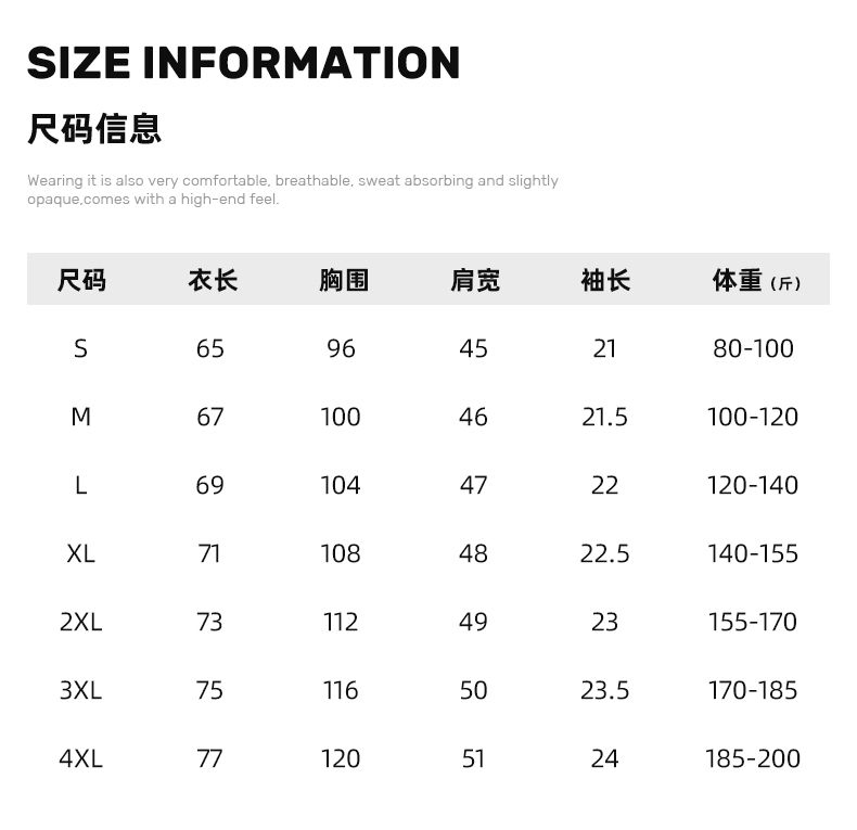 Size: S-4XL, unisex sizing. Please choose size according to recommended size or refer to length, bust and other measurements.